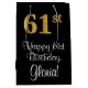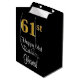 Ce design élégant, luxueux et sophistiqué de giftbag d'anniversaire comprend un grand numéro ordinal "61st" ayant une apparence fausse/imitation d'inspiration or, plus le message de voeux d'anniversaire "Happy 61st Birthday", et un nom de destinataire personnalisé dans une police de style script. Il dispose également d'une arrière - plan de couleur noire. Un sac cadeau comme celui-ci peut être utilisé pour envelopper les cadeaux donnés à quelqu'un pour célébrer son 61e anniversaire. [~Z0000514]