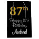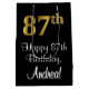 Ce modèle sophistiqué, élégant et luxueux de sac cadeau d'anniversaire comporte un grand numéro ordinal "87th" avec un motif dégradé imitation/faux d'inspiration or, ainsi que le message de bienvenue d'anniversaire "Happy 87th Birthday", et un nom de destinataire personnalisé dans une police de style script. L'arrière - plan est noir de couleur. Un sac cadeau comme celui-ci peut être une façon amusante d'envelopper un cadeau d'anniversaire ou un cadeau donné à quelqu'un qui célèbre son quatre-vingt-septième anniversaire. [~Z0000514]