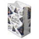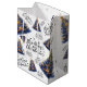 Ce sac cadeau est doté d'un motif fantaisiste d'arbres de Noël magiques avec une touche moderne. Contre un arrière - plan blanc vif, les arbres stylisés brillent de bleu marine et d'or, créant un look de vacances céleste sophistiqué. Le design festif est complété par l'expression manuscrite "la magie de Noël", répétée tout au long de la journée. Parfait pour envelopper des cadeaux élégants pour amis et famille, ce design distinctif se démarque sous l'arbre et apporte une touche d'émerveillement hivernal à tout présent.