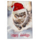 Fluffy Maine Coon, à travers la neige, avec un casquette du Père Noël et un texte "Joyeuses fêtes". Le texte peut être modifié.