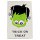 Un sac cadeau avec un adorable visage monstre frankenstein. Il a de grands yeux et un petit sourire avec une cicatrice sur le front. Des boulons classiques qui sortent des côtés de sa tête. Ce type est vraiment mignon et pas effrayant du tout.