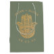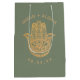 Sac Cadeau Moyen Mariage indien Gold Sage Green hamsa Henné