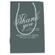 Sac cadeau moyen Merci de bienvenue Mariage gris. Sacs pour la faveur de mariage pour les invités.Ce sac cadeau élégant est décoré avec une élégante typographie de script Vous pouvez changer les noms, le texte et ajouter des étiquettes ainsi que des rubans satinés. Éléments correspondants disponibles.