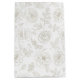 A delicate seamless floral pattern gift bag featuring elegant line art illustrations of wildflowers, leafy stems, and tiny berry branches on a clean white background. This minimalist botanical design uses soft neutral tones and fine outlines to create a calm, modern aesthetic.