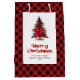 Sac Cadeau Moyen Minimal red black tartan Christmas bag personalize