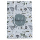 Ce sac cadeau Monogrammed Blue Bugs and Insects Boy Shower Medium comporte un mignon insecte motif de coccinelles dessinées à la main, papillons, libellules, vers, chenilles & abeilles dans une palette de couleurs pastel douce contre un arrière - plan bleu, monogrammé avec l'initiale et le nom du bébé à l'avant et à l'arrière. Parfait pour les Baby showers, Nouveau Bébé, Anniversaires de enfants, etc.
