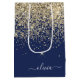 Sac Cadeau Moyen Monogramme de nom girly à paillettes bleu marine o