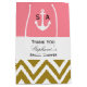 Le chevron doré monogramme avec douche nuptiale rose merci sac cadeau. Le design est composé d'un chevron en or métallique et blanc sur la moitié inférieure, d'un arrière - plan rose avec une ancre blanche avec vos initiales personnalisées sur la moitié supérieure et d'une bande blanche au milieu avec votre texte personnalisé.