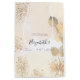 Pour un 21e anniversaire (ou tout âge). Un arrière - plan or doré à l'aquarelle avec des traits de brosse et de la poussière de parties scintillant imitation. Décoré de feuilles d'eucalyptus dorés, feuillage. Personnalisez et ajoutez une date, un nom et un âge de 21 ans. Le nom est écrit avec un script de style moderne écrit à la main.