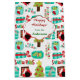 Les chiens de bande dessinée, une niche, un arbre de vacances, et un cadeau brillamment enveloppé font un motif mignon sur ce sac de cadeau de Noël. En outre, il y a un texte coloré qui indique le "Navi-Chien de Feliz", "nous aboient vous un Joyeux Noël", et des "pattes de Père Noël". Personnalisez la bannière blanche rayée en rouge sur l'avant. Amusement de vacances ! l'art de *Clip utilisé dans cette conception est garanti les droits d'auteur par Encore Software, Inc., qui permet l'utilisation à ses concesseurs. Tous droits réservés.