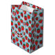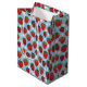 Un doux motif de fraises juteuses et les fleurs blanches du plante sont éparpillés à travers un arrière - plan bleu ciel. Ce sac cadeau est un complément amusant à votre collection d'enveloppes pour cadeaux d'anniversaire et de douche ainsi que pour les fêtes et les fêtes d'été.