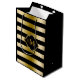 Sac Cadeau Moyen Motif de tons or monogrammes et de bandes noires