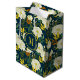 Sac Cadeau Moyen Motif feuille aux fleurs blanches