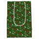 Sac Cadeau Moyen Motif vert feuillage de baies vitrées et rouges su