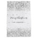 Un élégant arrière - plan blanc décoré de faux confettis argentés brille. Personnalisez et ajoutez votre nom de famille. Texte : Joyeux Noël.