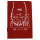 Christian Christmas Verse Typographie Sacs cadeaux de vacances avec Luke 2:11 en typographie festive sur un arrière - plan rouge rustique, avec des fleuris pittoresques de branches de pin blanc et de cônes de pin.