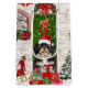 Chien Havanais Noël assis à l'extérieur de la maison décorée avec la couronne de Noël, le sapin de Noël est une idée cadeau de Noël parfait pour les amoureux de les chiens.