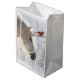 Un joli et unique sac cadeau de Noël. Unicorne magique et cardinal dans la neige. Enveloppement cadeau de Noël rendu beau et facile avec ce sac cadeau.