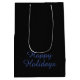 Sac Cadeau Moyen Noir neutre & Bleu simple élégant Joyeuses Fêtes