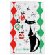 Design inspiré du milieu du siècle avec une touche rétro présentant des chats noirs de style atomique, des boules de Noël vertes et rouges et des étoiles noires sur un fond à motifs rouge, vert et blanc. Un design personnalisable pour que vous puissiez le personnaliser avec votre propre texte, images et idées. Une image d'art numérique originale créée par Jess Perry chez QuirkyChic Retro.