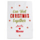 Notre Premier Noël Ensemble Sac Cadeau Snowflakes. Sac cadeau de Noël personnalisé avec typographie moderne et tendance disant Notre premier Noël ensemble, flocons de neige et noms. Ajoutez vos noms et faites un beau cadeau pour un petit ami ou une petite amie.