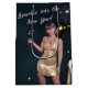 Présentez vos gâteries du Nouvel An avec notre luxueux sac cadeau avec la fabuleuse Fille de la fête dans sa robe éblouissante à paillettes d'or. Ce sac contient non seulement vos cadeaux, mais ajoute aussi une touche de glamour à vos célébrations festives. L'image présente une scène glamour du réveillon du Nouvel An avec une femme vêtue d'une robe à paillettes or frappante. Elle se tient en toute confiance à côté d'une table ornée de décorations festives et de boissons.