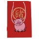 Sac Cadeau Moyen Nouvel An lunaire chinois de porc rouge argent cha