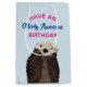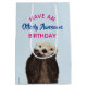 Un sac cadeau avec une adorable loutre tenant son visage dans ses petites pattes. Un texte au-dessus de sa tête dit : Avoir un Anniversaire absolument fantastique. Jeu mignon écrit dans une police de typographie branchée.