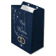 Celebrate eternal love with this stunning navy gift bag featuring shimmering silver stars, elegant script "Our Love Was Written in the Stars," and golden interlocking rings. Perfect for wedding favors, bridal showers, or anniversaries—elegant packaging for sweets, trinkets, or thank-you gifts!