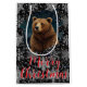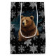 Sac Cadeau Moyen Ours de Noël rétro paysage enneigé minuit