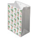 Ce sac cadeau de Noël tropical présente des palmiers festifs recouverts de lumières et de baubles. Aquarelle originale © Michele Davies.