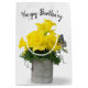 Bouquet de fleur de jonquille jaune vif avec papillon dans une tasse en étain vintage sur arrière - plan blanc pour l'anniversaire. Le texte peut être modifié ou supprimé.