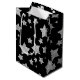 Sac cadeau de Noël pour les occasions festives du Nouvel An hivernal. Belle parties scintillant gris argent scintille étoiles motif sur noir personnalisable. Photo de parties scintillant pétillante !
