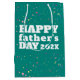 Bonne Fête des pères et l'année est écrit en gras blanc texte. Il s'opère vraiment contre le motif splatter de peinture sur l'arrière - plan bleu turquoise.