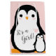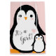Célébrez les nouveaux parents et Baby avec ce baby shower de pingouin mignon design! Le doux rose arrière - plan et mignon oiseau de pingouin de dessin animé en fait un design parfait pour une petite fille en chemin, surtout pour une douche d'hiver!