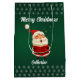 Faites vos cadeaux vraiment spéciaux avec ce sac cadeau de Noël avec un classique Père Noël. L'arrière - plan vert profond aux délicates flocons de neige apporte une touche élégante, tandis que le design traditionnel Père Noël apporte la nostalgie chaleureuse des vacances intemporelles. Le Père Noël joyeux dans son casquette rouge incarne l'esprit festif, la joie et l'excitation du don de Noël. Avec la personnalisation, vous pouvez ajouter un nom pour créer un détail unique et réfléchi pour vos proches. Alliant tradition et finition moderne, ce sac est parfait pour les petites surprises et les cadeaux plus grands.
