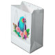 Sac Cadeau Moyen Perroquet bleu tropical aux fleurs tropicales