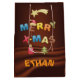 Un sac personnalisable pour Noël avec beaucoup de bonbons et de chocolat comme toile de fond
