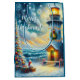Sac Cadeau Moyen Phare de Noël Arbre Nautique Bleu Côtier
