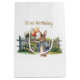 Pierre le lapin dans sa veste bleue avec ballons colorés Premier anniversaire salutation