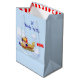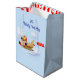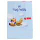 Joli nouveau sac cadeau bébé garçon avec un petit pilote volant un avion. Modifiez le texte pour ajouter le nom du bébé, de la mère à devenir ou des nouveaux parents.