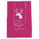 Sac Cadeau Moyen Pink Christmas White Reinder Message personnalisé