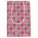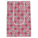 Sac Cadeau Moyen Plaid gris et rose avec fleurs camomilaires