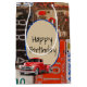 Ancienne collection de plaque d'immatriculation rouille de voiture avec camion rétro rouge pour l'anniversaire Texte peut être modifié.