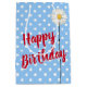 Motif à pois bleu et blanc avec marguerite blanche pour anniversaire.