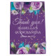 Belle Quinceañera cadeau sac/sac de faveur pour fête d'anniversaire avec élégant violet et bleu aquarelle floral et brillant parties scintillant or sur un arrière - plan violet. Le texte dit, "Merci". Personnalisez avec le nom de la célébrante et sa date de fête.
