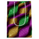 SAC CADEAU MOYEN PURPLE GREEN GOLD GLITTER LOOK MARDI GRAS