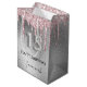 Sac Cadeau Moyen Quinceanera parties scintillant argent gouttes ros