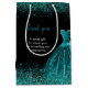 Ce sac cadeau chic présente une belle robe d'aquarelle élégante à thème bleu turquoise sur un arrière - plan noir avec fausse parties scintillant en haut et en bas sur les deux côtés avec un message spécial de chaque côté. Le texte peut être personnalisé selon vos besoins.