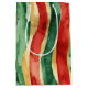 Sac Cadeau Moyen Red Gold Green Stripes Noël